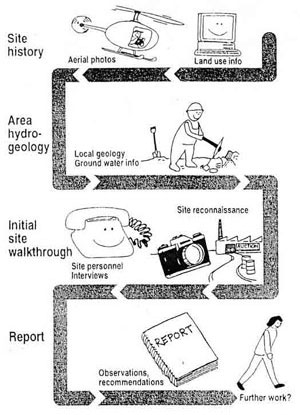 Observations, recommendations, the site history, area hydrogeology, and site walkthrough should all be combined into a report format to assist in defining the need for further work to be conducted.